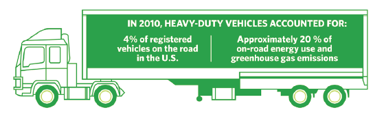 That last word, “pollutants” is the key here, as now that carbon dioxide has been classified by the EPA as a pollutant they are asserting that they can now regulate carbon emissions. That is a much larger topic impacting nearly all of our energy production, but for now let’s just focus on the trucking requirements. The main point of all this is that the heavy duty trucking segment produces a disproportionate amount of emissions despite the overall numbers of vehicles being far less than automobiles. The graphic below from the report shows just 4% of registered vehicles emitting 20% of the GHG’s from transportation.