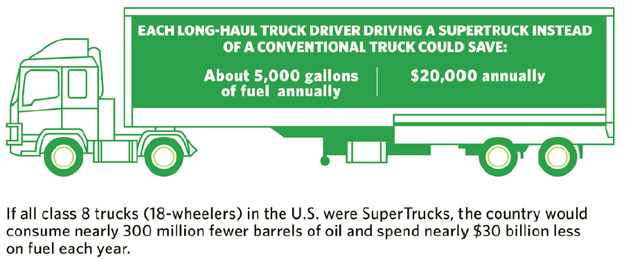 Most fleets and truck operators today require a 1 to 2 year payback on their incremental investments in new truck technology. This is the hurdle that natural gas powered trucks are now clearing, which is why we are seeing many more of them on the road. So before we all hail the arrival of the SuperTruck that is going to save us 10 billion gallons a year I think we have to know more about the price to get there.