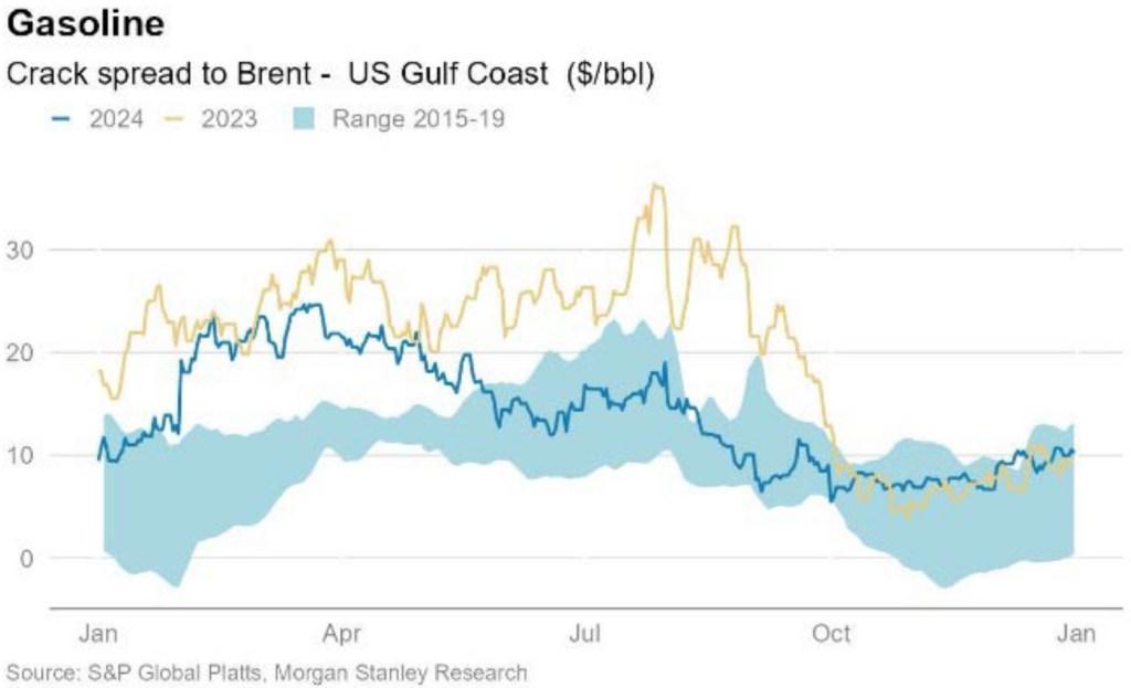 Does the lack of gasoline refining margin in the summer really indicate an early phase of demand destruction from EV’s? It’s hard to draw a direct conclusion as run rates, turn around schedules, inventory levels and many other factors all have a meaningful impact on refining margins.