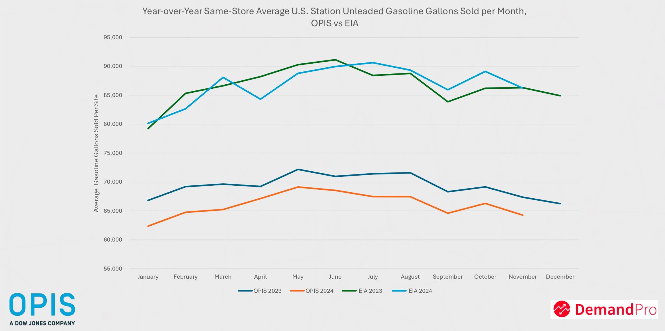 Looking further downstream for other indicators however does seem to show that something is taking a bite out of gasoline demand. OPIS, a gold standard for downstream fuels pricing and demand data, recently published their Retail Year in Review report. While there are a number of trends apparent in the report, one fundamental stands out. Gasoline demand, as measured by OPIS’s proprietary methods, declined by 5% in the US from 2023 to 2024, (Figure 5).