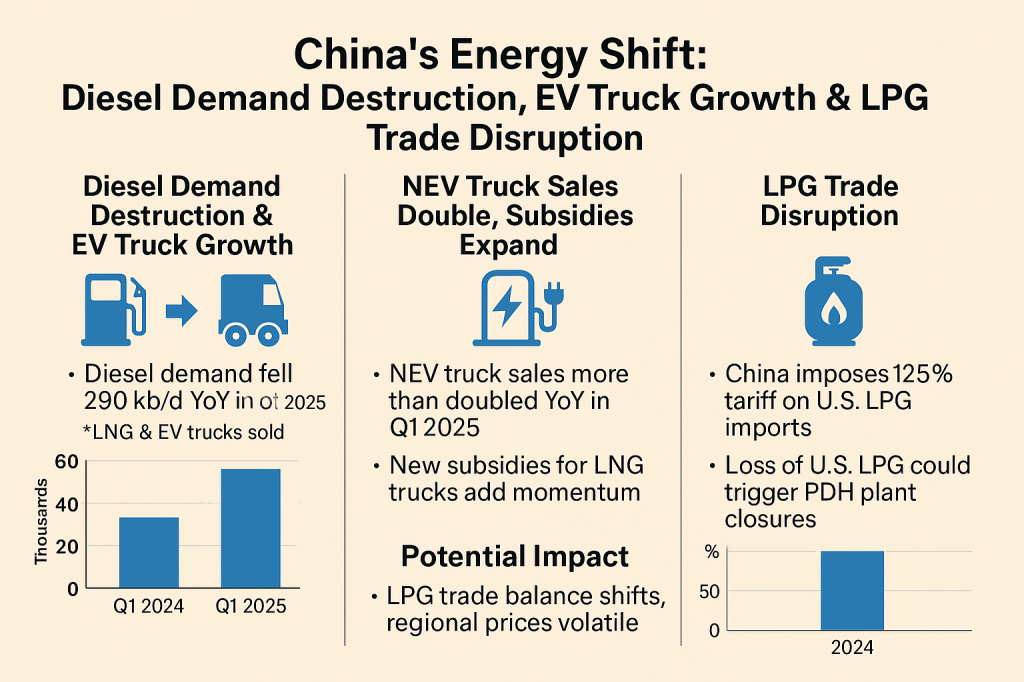 💡 Takeaway: Structural shifts in fuel demand and trade policy are reshaping energy flows and are sure to inject more volatility. From NEV trucking to tariff-driven feedstock switching, the ripple effects will be global.