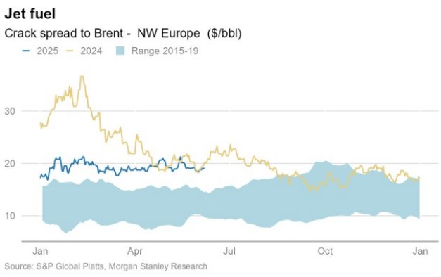 - Middle distillate cracks (diesel and jet) were a major driver of high refining margins in early 2025.